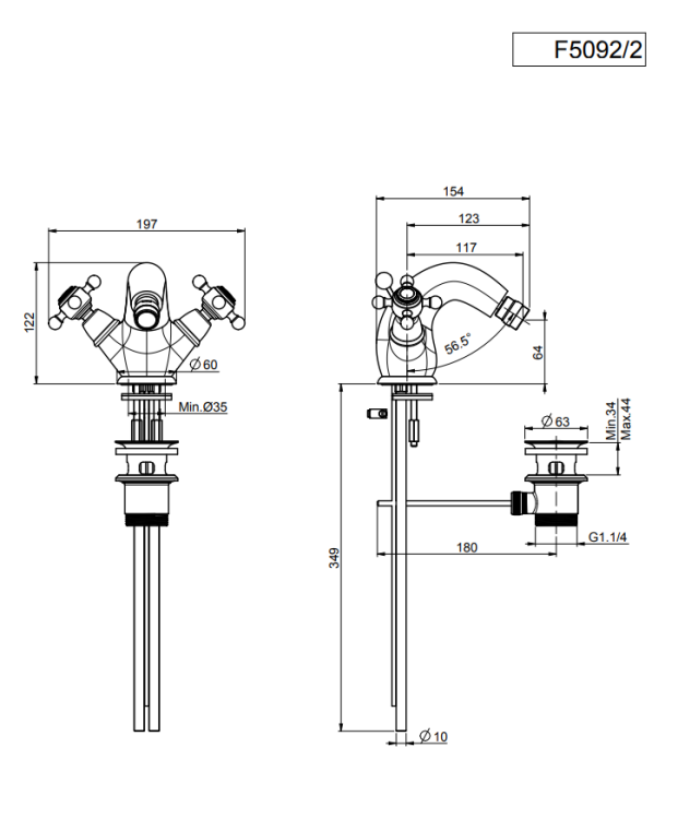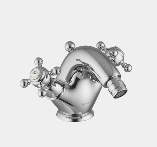 Смеситель для биде, Fima Carlo Frattini, Elizabeth, тип открывания воды-двухвентильный, отверстия для монтажа-1, высота, мм-122, вынос излива, мм-117, донный клапан-есть, тип подводки-гибкий, цвет-хром Смеситель для биде, Fima Carlo Frattini, Elizabeth, цвет-хром