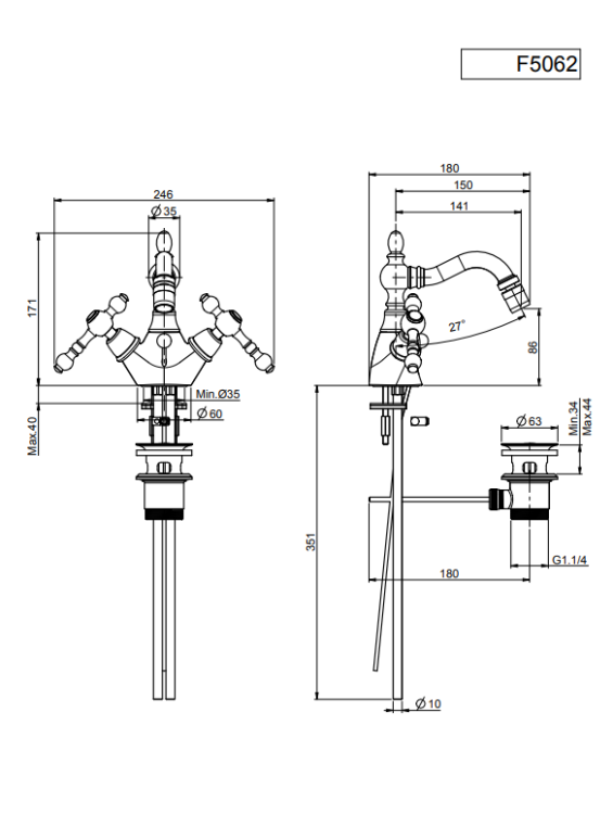 Смеситель для биде, Fima Carlo Frattini, Epoque, тип открывания воды-двухвентильный, тип регулирования воды-керамическая кран-букса, отверстия для монтажа-1, высота, мм-173, вынос излива, мм-141, вращающийся излив, донный клапан-есть, тип подводки-гибкая, цвет-античная бронза Смеситель для биде, Fima Carlo Frattini, Epoque, цвет-античная бронза