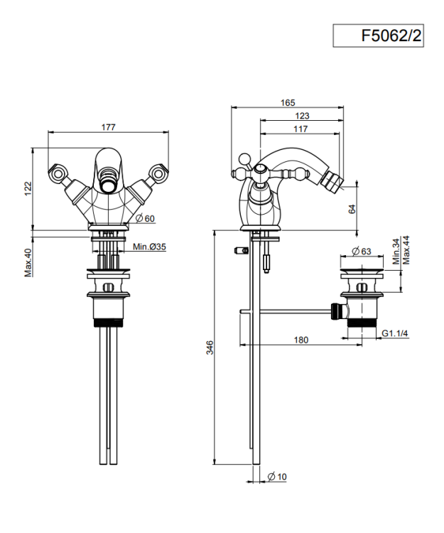 Смеситель для биде, Fima Carlo Frattini, Epoque, тип открывания воды-вентильный, тип регулирования воды-керамическая кран-букса, отверстия для монтажа-1, высота, мм-122, вынос излива, мм-117, донный клапан-есть, тип подводки-гибкая, цвет-золото (Gold, Polished Gold) Смеситель для биде, Fima Carlo Frattini, Epoque, цвет-золото (Gold, Polished Gold)