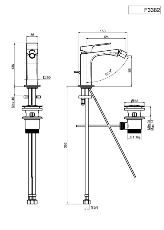 Смеситель для биде, Fima Carlo Frattini, Fit, тип открывания воды-однорычажный, тип регулирования воды-керамический картридж, отверстия для монтажа-1, высота, мм-136, вынос излива, мм-107, материал ручки-металл, цвет ручки-в цвет смесителя, донный клапан-есть (1"1/4), тип подводки-гибкая, стандарт подвода воды-3/8", цвет-черный матовый Смеситель для биде, Fima Carlo Frattini, Fit, цвет-черный матовый