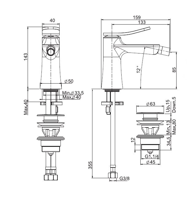 | Вынос, мм | 133 |