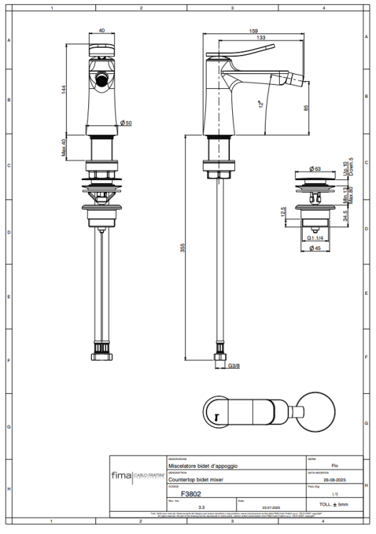 Смеситель для биде, Fima Carlo Frattini, Flo', тип открывания воды-однорычажный, тип регулирования воды-керамический картридж, отверстия для монтажа-1, высота, мм-143, вынос излива, мм-133, донный клапан-есть (click-clack 1``1/4), тип подводки-гибкая, стандарт подвода воды-3/8", цвет-брашированное золото Смеситель для биде, Fima Carlo Frattini, Flo', цвет-брашированное золото