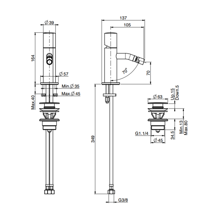 Смеситель для биде, Fima Carlo Frattini, So, тип открывания воды-однорычажный, тип регулирования воды-керамический картридж, отверстия для монтажа-1, высота, мм-163, вынос излива, мм-105, донный клапан-есть, click-clack 1``1/4, тип подводки-гибкая, стандарт подвода воды-3/8", с двумя гибкими шлангами, ручку-необходимо заказать, цвет-белый матовый Смеситель для биде, Fima Carlo Frattini, So, цвет-белый матовый