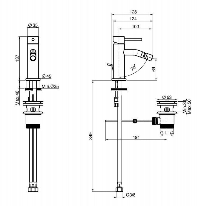 Смеситель для биде, Fima Carlo Frattini, Spillo Up, тип открывания воды-однорычажный, тип регулирования воды-керамический картридж, отверстия для монтажа-1, высота, мм-137, вынос излива, мм-103, материал ручки-металл, цвет ручки-в цвет смесителя, с двумя гибкими шлангами, донный клапан-есть 1"1/4, тип подводки-гибкая, стандарт подвода воды-3/8", цвет-хром Смеситель для биде, Fima Carlo Frattini, Spillo Up, цвет-хром
