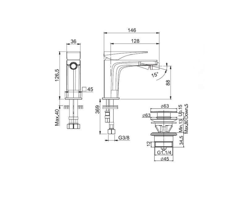 Смеситель для биде, Fima Carlo Frattini, Zeta, тип открывания воды-однорычажный, тип регулирования воды-керамический картридж, отверстия для монтажа-1, высота, мм-126.5, вынос излива, мм-128, материал ручки-металл, цвет ручки-в цвет смесителя, донный клапан-есть click-clack 1``1/4, с двумя гибкими шлангами, тип подводки-гибкая, стандарт подвода воды-3/8", цвет-хром Смеситель для биде, Fima Carlo Frattini, Zeta, цвет-хром