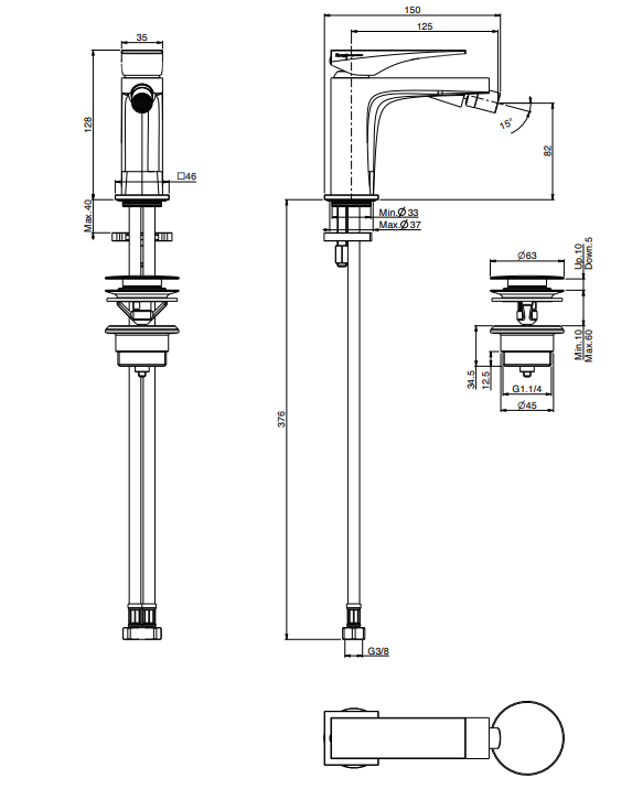 Смеситель для биде, Fima Carlo Frattini, Zeta, тип открывания воды-однорычажный, тип регулирования воды-керамический картридж, отверстия для монтажа-1, высота, мм-126.5, вынос излива, мм-128, материал ручки-металл, цвет ручки-в цвет смесителя, донный клапан-есть click-clack 1``1/4, с двумя гибкими шлангами, тип подводки-гибкая, стандарт подвода воды-3/8", цвет-золото Смеситель для биде, Fima Carlo Frattini, Zeta, цвет-золото