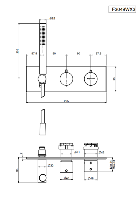 Смеситель для душа, Fima Carlo Frattini, Fimatherm, на 2 потребителя, тип открывания воды-вентильный, тип регулирования воды-термостатический картридж, монтаж-настенный встраиваемый, отверстия для монтажа-3, в комплекте-держатель для душа с подводом воды, переключатель, гибкий шланг хромалюкс, мм-1500, ручной душ, внутренняя часть-необходимо заказать, цвет-брашированный чёрный хром Смеситель для душа, Fima Carlo Frattini, Fimatherm, на 2 потребителя, цвет-брашированный чёрный хром