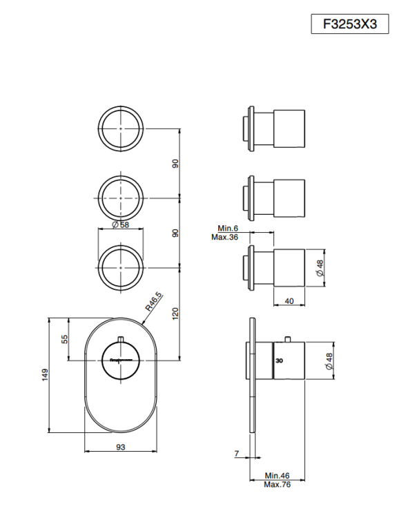 Смеситель для душа, Fima Carlo Frattini, Fimatherm, на 3 потребителя, тип открывания воды-вентильный, тип регулирования воды-термостатический картридж, монтаж-настенный встраиваемый, отверстия для монтажа-4, внутренняя часть-необходимо заказать, цвет-никель брашированный Смеситель для душа, Fima Carlo Frattini, Fimatherm, на 3 потребителя, цвет-никель брашированный