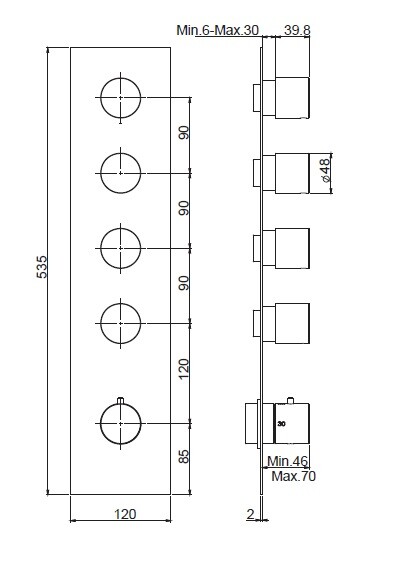 Смеситель для душа, Fima Carlo Frattini, Fimatherm, тип открывания воды-вентильный, тип регулирования воды-термостатический картридж, монтаж-настенный встраиваемый, установка вертикально и горизонтально, 4 клапана контроля, ручки с защитой от обжигания, внутренняя часть-необходимо заказать, цвет-брашированный никель Смеситель для душа, Fima Carlo Frattini, Fimatherm, цвет-брашированный никель