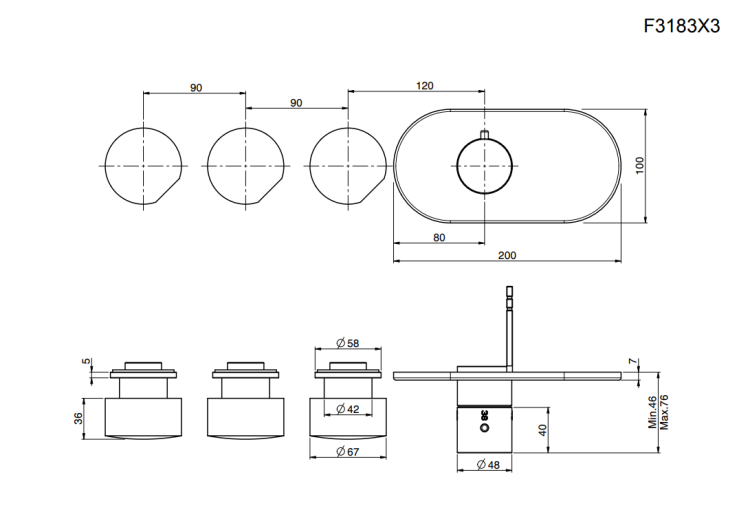 Смеситель для душа, Fima Carlo Frattini, Fimatherm, тип открывания воды-вентильный, тип регулирования воды-термостатический картридж, монтаж-настенный встраиваемый, отверстия для монтажа-4, внутренняя часть-необходимо заказать, цвет-бронза брашированная янтарная Смеситель для душа, Fima Carlo Frattini, Fimatherm, цвет-бронза брашированная янтарная