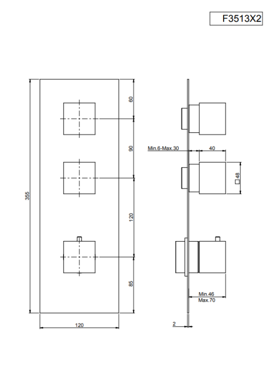 Смеситель для душа, Fima Carlo Frattini, Fimatherm, на 2 потребителя, тип открывания воды-вентильный, ручки с защитой от обжигания, тип регулирования воды-термостатический картридж, монтаж-настенный встраиваемый, установка-вертикально и горизонтально, внутренняя часть-необходимо заказать, цвет-чёрный матовый Смеситель для душа, Fima Carlo Frattini, Fimatherm, на 2 потребителя, цвет-чёрный матовый