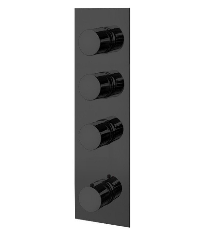 Смеситель для душа, Fima Carlo Frattini, Fimatherm, на 3 потребителя, тип открывания воды-вентильный, тип регулирования воды-термостатический картридж, монтаж-настенный встраиваемый, установка вертикально и горизонтально, 3 клапана контроля, ручки с защитой от обжигания, внутренняя часть-необходимо заказать, цвет-чёрный матовый Смеситель для душа, Fima Carlo Frattini, Fimatherm, цвет-чёрный матовый