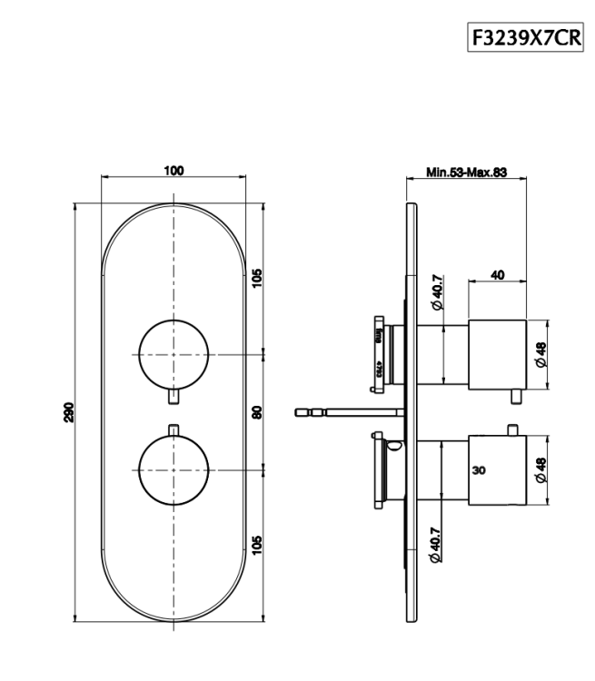 Смеситель для душа, Fima Carlo Frattini, Fimatherm, на 2/3 потребителя, тип открывания воды-вентильный, тип регулирования воды-термостатический картридж, монтаж-настенный встраиваемый, отверстия для монтажа-2, внутренняя часть-необходимо заказать, цвет-хром Смеситель для душа, Fima Carlo Frattini, Fimatherm, на 2/3 потребителя, цвет-хром