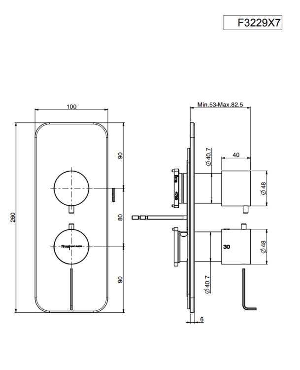 Смеситель для душа, Fima Carlo Frattini, Fimatherm, на 2/3 потребителя, тип открывания воды-однорычажный, тип регулирования воды-термостатический картридж, монтаж-настенный встраиваемый, отверстия для монтажа-2, внутренняя часть-необходимо заказать, цвет-хром Смеситель для душа, Fima Carlo Frattini, Fimatherm, на 2/3 потребителя, цвет-хром