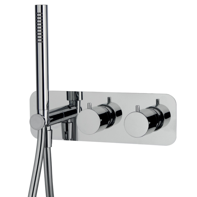 Смеситель для душа, Fima Carlo Frattini, Fimatherm, тип открывания воды-вентильный, тип регулирования воды-термостатический картридж, монтаж-настенный встраиваемый, отверстия для монтажа-3, в комплекте-держатель для душа с подводом воды, ручной душ с защитой от извести анти-кальк, переключатель, гибкий шланг хромалюкс, длина шланга, мм-1500, внутренняя часть-необходимо заказать, цвет-никель брашированный Смеситель для душа, Fima Carlo Frattini, Fimatherm, цвет-никель брашированный