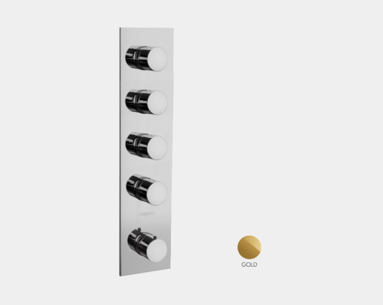 Смеситель для душа, Fima Carlo Frattini, Fimatherm, тип открывания воды-вентильный, тип регулирования воды-термостатический картридж, монтаж-настенный встраиваемый, отверстия для монтажа-5, внутренняя часть-необходимо заказать, цвет-золото Смеситель для душа, Fima Carlo Frattini, Fimatherm, цвет-золото