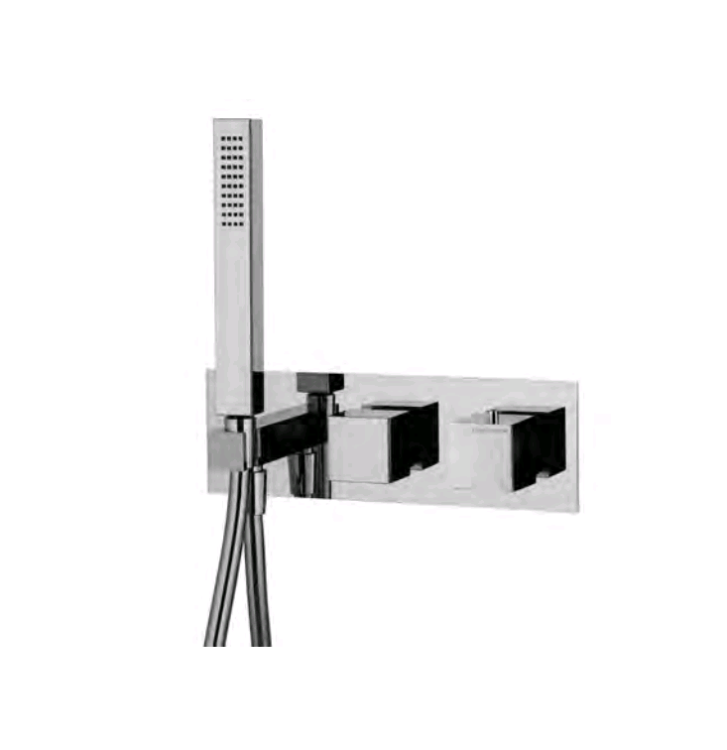 Смеситель для душа, Fima Carlo Frattini, Fimatherm, на 2 потребителя, тип открывания воды-однорычажный, тип регулирования воды-термостатический картридж, монтаж-настенный встраиваемый, отверстия для монтажа-3, в комплекте-ручной душ с защитой от извести анти-кальк, держатель для душа с подводом воды, переключатель, гибкий шланг хромалюкс 1500 мм, внутренняя часть-необходимо заказать, цвет-никель брашированный Смеситель для душа, Fima Carlo Frattini, Fimatherm, на 2 потребителя, цвет-никель брашированный