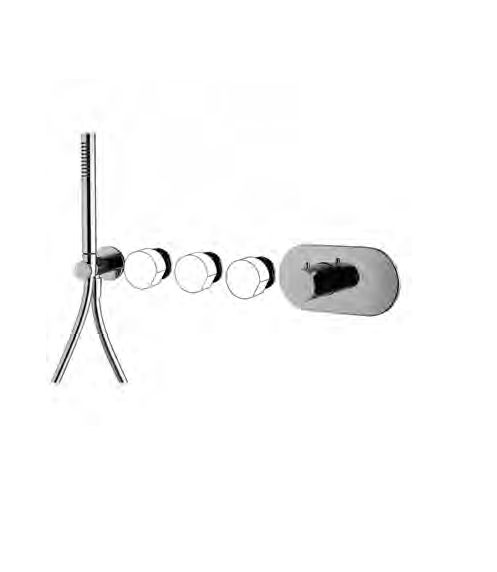 Смеситель для душа, Fima Carlo Frattini, Fimatherm, на 3 потребителя, тип открывания воды-вентильный, тип регулирования воды-термостатический картридж, монтаж-настенный встраиваемый, отверстия для монтажа-5, внутренняя часть-необходимо заказать, цвет-хром черный Смеситель для душа, Fima Carlo Frattini, Fimatherm, на 3 потребителя, цвет-хром черный