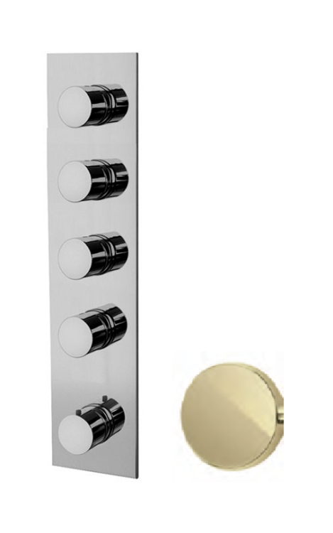 Смеситель для душа, Fima Carlo Frattini, Fimatherm, на 4 потребителя, тип открывания воды-вентильный, тип регулирования воды-термостатический картридж, монтаж-настенный встраиваемый, отверстия для монтажа-5, внутренняя часть-необходимо заказать, цвет-шампань Смеситель для душа, Fima Carlo Frattini, Fimatherm, на 4 потребителя, цвет-шампань