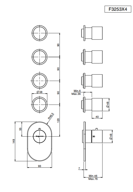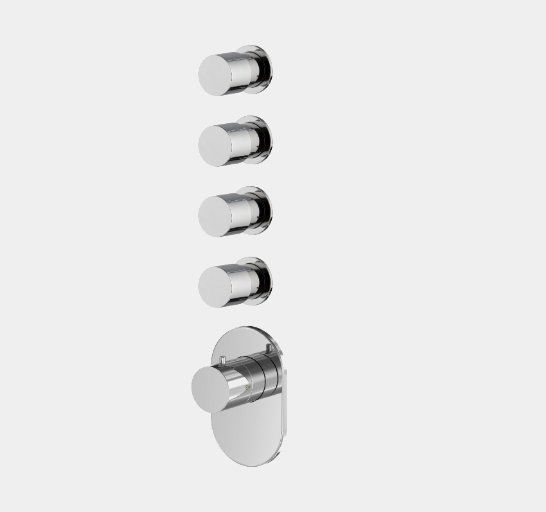 Смеситель для душа, Fima Carlo Frattini, Fimatherm, на 4 потребителя, тип открывания воды-вентильный, тип регулирования воды-термостатический картридж, монтаж-настенный встраиваемый, отверстия для монтажа-5, внутренняя часть-необходимо заказать, цвет-золото брашированное Смеситель для душа, Fima Carlo Frattini, Fimatherm, на 4 потребителя, цвет-золото брашированное