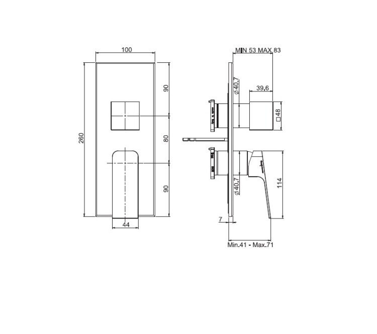 Смеситель для душа, Fima Carlo Frattini, Fit, тип открывания воды-однорычажный, монтаж-настенный встраиваемый, отверстия для монтажа-1, внутренняя часть-необходимо заказать, цвет-черный матовый, с переключателем на 2/3 источника Смеситель для душа, Fima Carlo Frattini, Fit, цвет-черный матовый