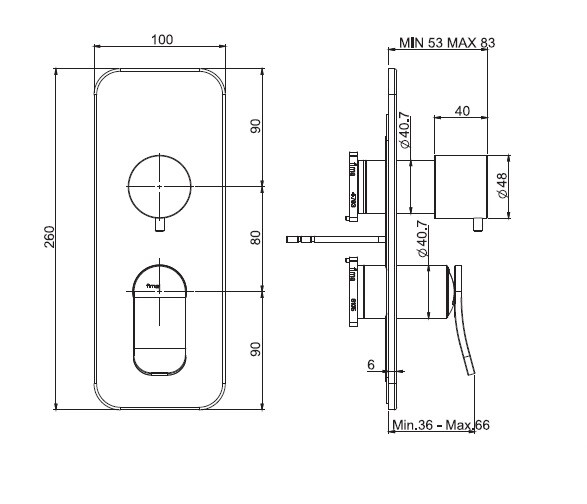 Смеситель для душа, Fima Carlo Frattini, Flo', тип открывания воды-однорычажный, монтаж-настенный встраиваемый, с переключателем на 2/3 источника, внутренняя часть-необходимо заказать, цвет-брашированный никель Смеситель для душа, Fima Carlo Frattini, Flo', цвет-брашированный никель