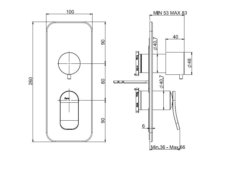 Смеситель для душа, Fima Carlo Frattini, Flo', тип открывания воды-однорычажный, монтаж-настенный встраиваемый, с переключателем на 2/3 источника, внутренняя часть-необходимо заказать, цвет-хром Смеситель для душа, Fima Carlo Frattini, Flo', цвет-хром