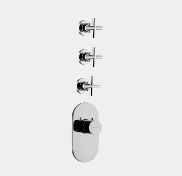 Смеситель для душа, Fima Carlo Frattini, Maxima, на 3 потребителя, установка вертикально и горизонтально, тип открывания воды-вентильный, тип регулирования воды-термостатический картридж, монтаж-настенный встраиваемый, отверстия для монтажа-4, ручки с защитой от обжигания, внутренняя часть-необходимо заказать, цвет-Brushed Black Chrome Смеситель для душа, Fima Carlo Frattini, Maxima, цвет-Brushed Black Chrome