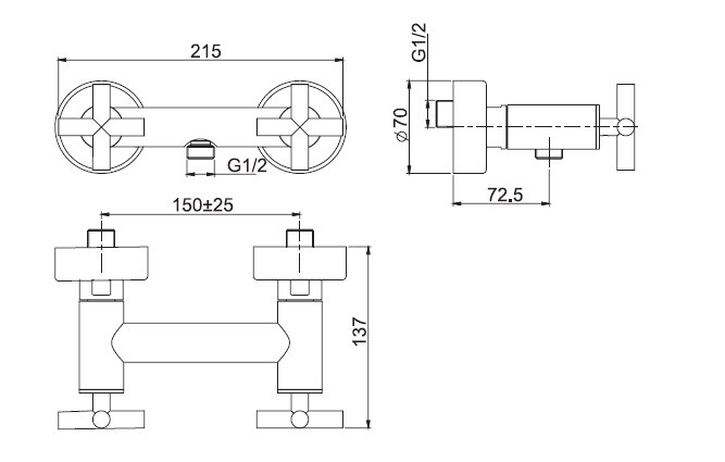 Смеситель для душа, Fima Carlo Frattini, Maxima, тип открывания воды-вентильный, монтаж-настенный, отверстия для монтажа-2, цвет-хром Смеситель для душа, Fima Carlo Frattini, Maxima. цвет-хром
