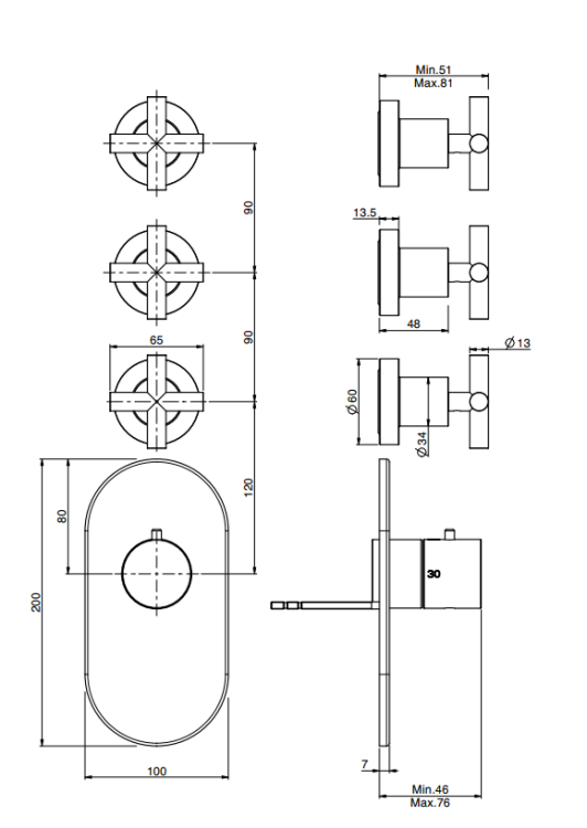 Смеситель для душа, Fima Carlo Frattini, Maxima, на 3 потребителя, установка вертикально и горизонтально, тип открывания воды-вентильный, тип регулирования воды-термостатический картридж, монтаж-настенный встраиваемый, отверстия для монтажа-4, ручки с защитой от обжигания, внутренняя часть-необходимо заказать, цвет-никель брашированный Смеситель для душа, Fima Carlo Frattini, Maxima, на 3 потребителя, цвет-никель брашированный
