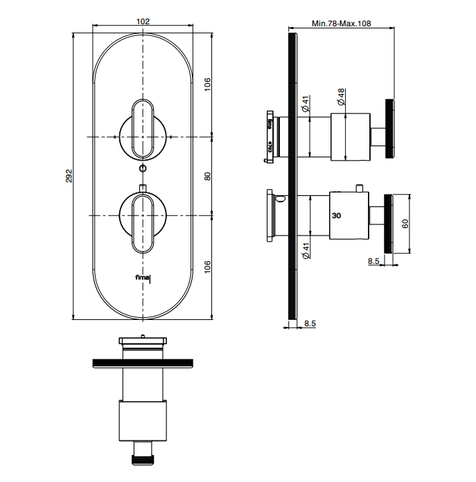 Смеситель для душа, Fima Carlo Frattini, Park Lane, на 2/3 потребителя, тип открывания воды-вентильный, тип регулирования воды-термостатический картридж, монтаж-настенный встраиваемый, отверстия для монтажа-2, внутренняя часть-необходимо заказать, цвет-бронза брашированная янтарная Смеситель для душа, Fima Carlo Frattini, Park Lane, на 2/3 потребителя, цвет-бронза брашированная янтарная