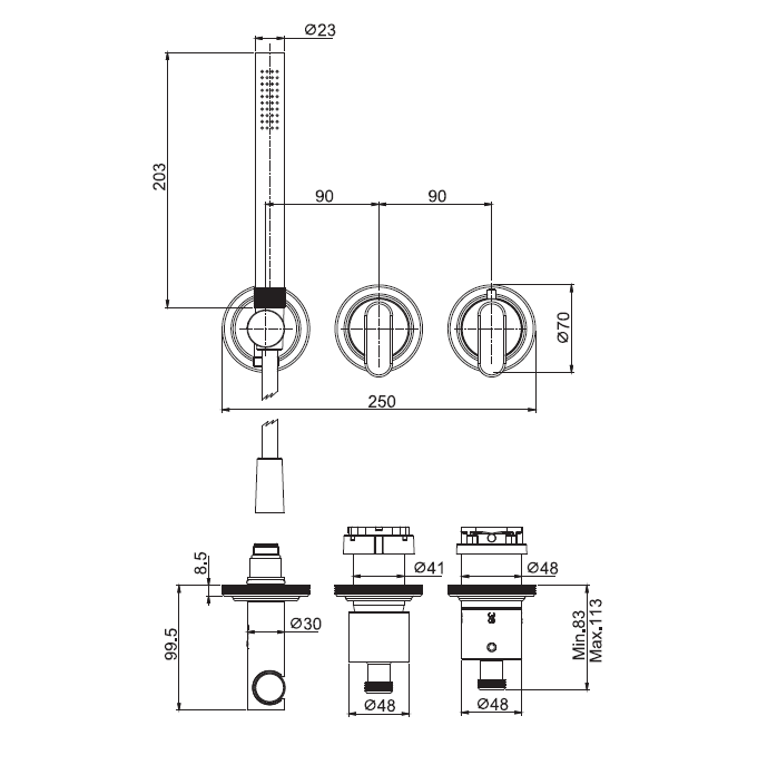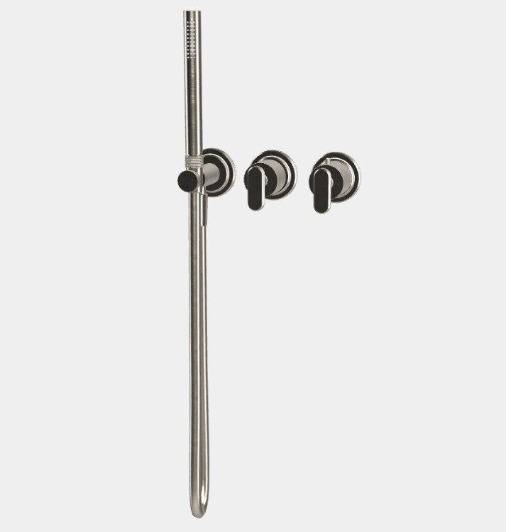 Смеситель для душа, Fima Carlo Frattini, Park Lane, на 2 потребителя, тип открывания воды-однорычажный, тип регулирования воды-термостатический картридж, монтаж-настенный встраиваемый, отверстия для монтажа-3, в комплекте-ручной душ с защитой от извести анти-кальк, держатель для душа с подводом воды, переключатель, гибкий шланг хромалюкс, мм-1500, внутренняя часть-необходимо заказать, цвет-никель брашированный Смеситель для душа, Fima Carlo Frattini, Park Lane, на 2 потребителя, цвет-никель брашированный