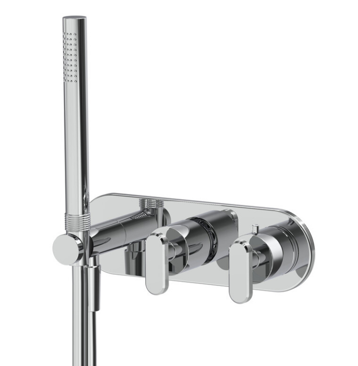 Смеситель для душа, Fima Carlo Frattini, Park Lane, на 2 потребителя, тип открывания воды-вентильный, тип регулирования воды-термостатический картридж, монтаж-настенный встраиваемый, отверстия для монтажа-3, внутренняя часть-необходимо заказать, с душевым комплектом, ручной душ с защитой от извести анти-кальк, держатель для душа с подводом воды, гибкий шланг хромалюкс-1500 мм, цвет-шампань брашированная Смеситель для душа, Fima Carlo Frattini, Park Lane, на 2 потребителя, цвет-шампань брашированная