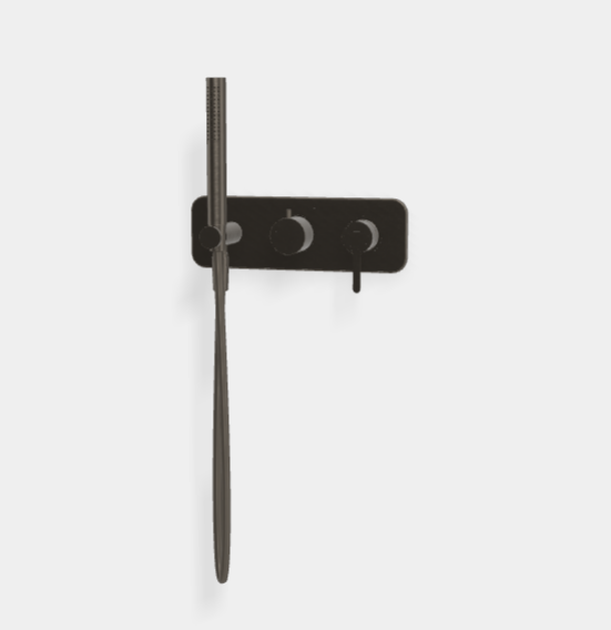 Смеситель для душа, Fima Carlo Frattini, Snap, на 2 потребителя, тип открывания воды-однорычажный, тип регулирования воды-керамический картридж, монтаж-потолочный, отверстия для монтажа-3, внутренняя часть-необходимо заказать, в комплекте-переключатель, держатель для душа с подводом воды, ручной душ с защитой от извести анти-кальк, гибкий шланг хромалюкс 1500мм, цвет-брашированный черный хром Смеситель для душа, Fima Carlo Frattini, Snap, на 2 потребителя, цвет-брашированный черный хром