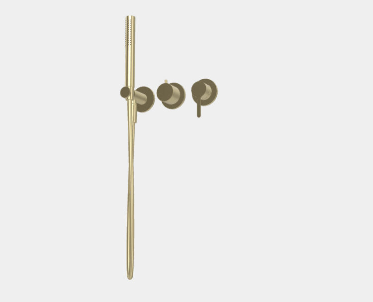 Смеситель для душа, Fima Carlo Frattini, Snap, количество потребителей-на 2 потребителя, тип открывания воды-однорычажный, тип регулирования воды-керамический картридж, монтаж-настенный встраиваемый, отверстия для монтажа-3, внутренняя часть-необходимо заказать, в комплекте-переключатель, держатель для душа с подводом воды, ручной душ, гибкий шланг хромалюкс 1500 мм, цвет-брашированный шампань Смеситель для душа, Fima Carlo Frattini, Snap, на 2 потребителя, цвет-брашированный шампань