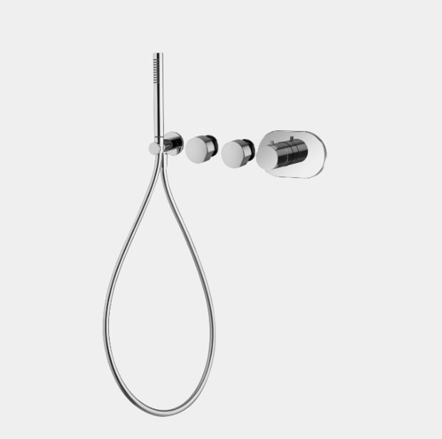 Смеситель для душа, Fima Carlo Frattini, Fimatherm, на 2 потребителя, тип открывания воды-вентильный, тип регулирования воды-термостатический картридж, монтаж-настенный встраиваемый, отверстия для монтажа-4, в комплекте-держатель для душа с подводом воды, ручной душ с защитой от извести анти-кальк, гибкий шланг хромалюкс, мм-1500, ручки и внутренняя часть-необходимо заказать, цвет-брашированный черный хром Смеситель для душа, Fima Carlo Frattini, Fimatherm, цвет-брашированный черный хром