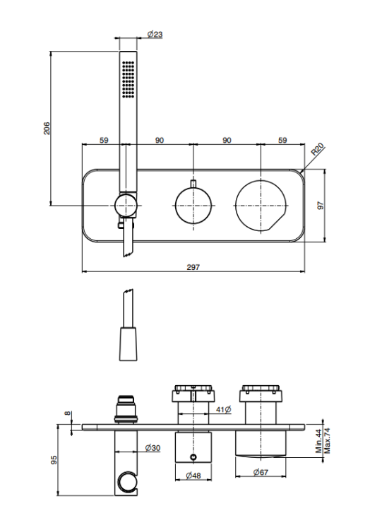 Смеситель для душа, Fima Carlo Frattini, So, на 2 потребителя, тип открывания воды-однорычажный, тип регулирования воды-керамический картридж, монтаж-настенный встраиваемый, отверстия для монтажа-3, внутренняя часть-необходимо заказать, в комплекте-ручной душ с защитой от извести анти-кальк, держатель для душа с подводом воды, гибкий шланг хромалюкс, длина шланга, мм-1500 мм, ручки-необходимо заказать, цвет-бронза брашированная янтарная Смеситель для душа, Fima Carlo Frattini, So, на 2 потребителя, цвет-бронза брашированная янтарная