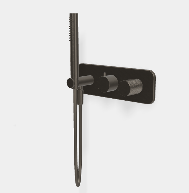 Смеситель для душа, Fima Carlo Frattini, Spillo Tech, G COLLECTION, на 2 потребителя, тип открывания воды-однорычажный, тип регулирования воды-керамический картридж, монтаж-настенный встраиваемый, отверстия для монтажа-3, в комплекте-переключатель, держатель для душа с подводом воды, ручной душ с защитой от извести анти-кальк, гибкий шланг хромалюкс,мм-1500, металлическая пластина, внутренняя часть-необходимо заказать, цвет-хром черный брашированный Смеситель для душа, Fima Carlo Frattini, Spillo Tech, G COLLECTION, на 2 потребителя, цвет-хром черный брашированный