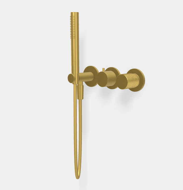 Смеситель для душа, Fima Carlo Frattini, Spillo Tech, G COLLECTION, на 2 потребителя, тип открывания воды-однорычажный, тип регулирования воды-керамический картридж, монтаж-настенный встраиваемый, отверстия для монтажа-3, в комплекте-держатель для душа с подводом воды, ручной душ с защитой от извести анти-кальк, переключатель, гибкий шланг, мм-1500 хромалюкс, металлическая пластина, внутренняя часть-необходимо заказать, цвет-брашированное золото Смеситель для душа, Fima Carlo Frattini, Spillo Tech, G COLLECTION, на 2 потребителя, цвет-брашированное золото