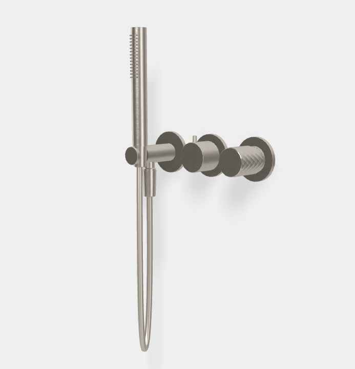 Смеситель для душа, Fima Carlo Frattini, Spillo Tech, X COLLECTION, на 2 потребителя, тип открывания воды-однорычажный, тип регулирования воды-керамический картридж, монтаж-настенный встраиваемый, отверстия для монтажа-3, в комплекте-переключатель, держатель для душа с подводом воды, ручной душ с защитой от извести анти-кальк, гибкий шланг хромалюкс,мм-1500, металлическая пластина, внутренняя часть-необходимо заказать, цвет-брашированный шампань Смеситель для душа, Fima Carlo Frattini, Spillo Tech, X COLLECTION, на 2 потребителя, цвет-брашированный шампань