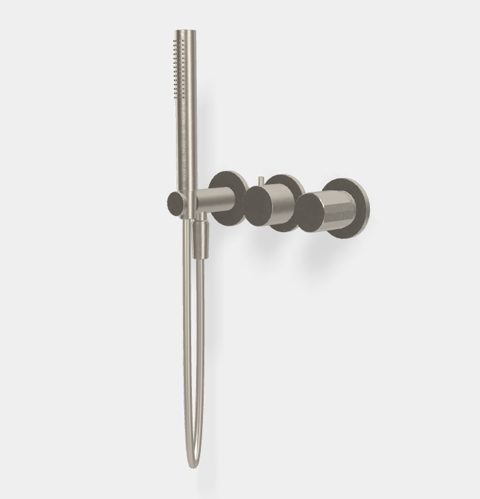 Смеситель для душа, Fima Carlo Frattini, Spillo Tech, V COLLECTION, на 2 потребителя, тип открывания воды-однорычажный, тип регулирования воды-керамический картридж, монтаж-настенный встраиваемый, отверстия для монтажа-3, в комплекте-переключатель, держатель для душа с подводом воды, ручной душ с защитой от извести анти-кальк, гибкий шланг хромалюкс,мм-1500, металлическая пластина, внутренняя часть-необходимо заказать, цвет-никель брашированный Смеситель для душа, Fima Carlo Frattini, Spillo Tech, V COLLECTION, на 2 потребителя, цвет-никель брашированный