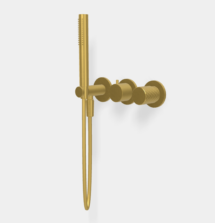 Смеситель для душа, Fima Carlo Frattini, Spillo Tech, X COLLECTION, на 2 потребителя, тип открывания воды-однорычажный, тип регулирования воды-керамический картридж, монтаж-настенный встраиваемый, отверстия для монтажа-3, в комплекте-переключатель, держатель для душа с подводом воды, ручной душ с защитой от извести анти-кальк, гибкий шланг хромалюкс,мм-1500, металлическая пластина, внутренняя часть-необходимо заказать, цвет-брашированное золото Смеситель для душа, Fima Carlo Frattini, Spillo Tech, X COLLECTION, цвет-брашированное золото