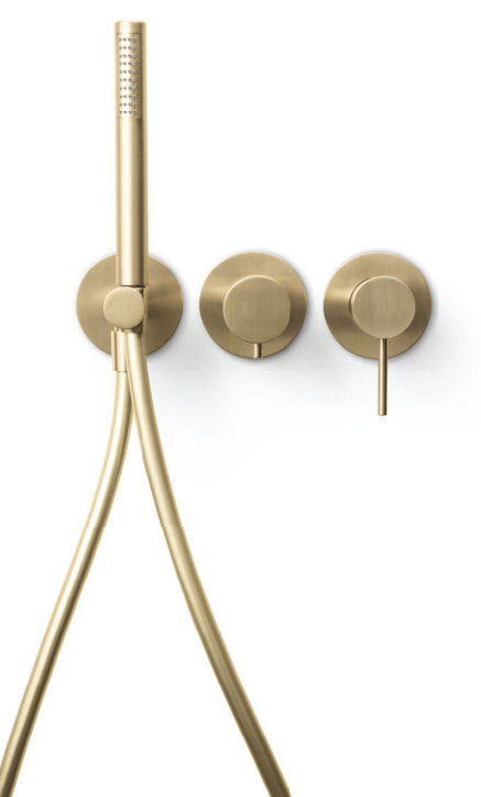 Смеситель для душа, Fima Carlo Frattini, Spillo Up, на 2 потребителя, тип открывания воды-однорычажный, тип регулирования воды-керамический картридж, монтаж-настенный встраиваемый, отверстия для монтажа-3, в комплекте-держатель для душа с подводом воды, ручной душ с защитой от извести анти-кальк, гибкий шланг хромалюкс, длина шланга, мм-1500, внутренняя часть-необходимо заказать, цвет-брашированный шампань Смеситель для душа, Fima Carlo Frattini, Spillo Up, цвет-брашированный шампань