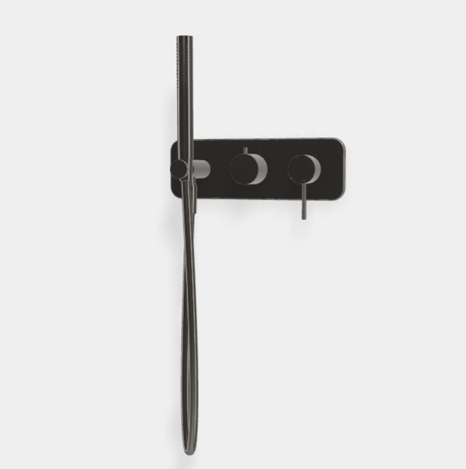 Смеситель для душа, Fima Carlo Frattini, Spillo Up, на 2 потребителя, тип открывания воды-однорычажный, тип регулирования воды-керамический картридж, монтаж-настенный встраиваемый, отверстия для монтажа-3, в комплекте-держатель для душа с подводом воды, ручной душ с защитой от извести анти-кальк, гибкий шланг хромалюкс, длина шланга, мм-1500, внутренняя часть-необходимо заказать, цвет-чёрный хром Смеситель для душа, Fima Carlo Frattini, Spillo Up, на 2 потребителя, цвет-чёрный хром