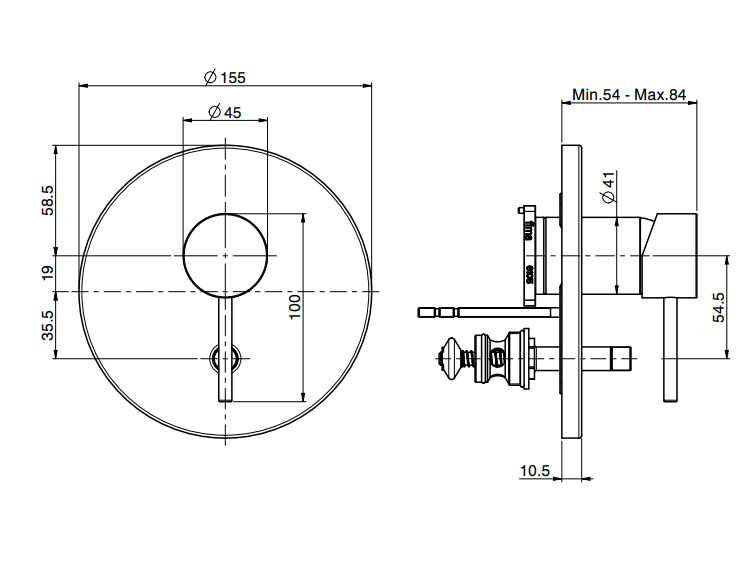 Смеситель для душа, Fima Carlo Frattini, Spillo Up, на 2 потребителя, с переключателем, тип открывания воды-однорычажный, тип регулирования воды-керамический картридж, монтаж-настенный встраиваемый, отверстия для монтажа-1, внутренняя часть-необходимо заказать, цвет-хром черный Смеситель для душа, Fima Carlo Frattini, Spillo Up, на 2 потребителя, цвет-хром черный