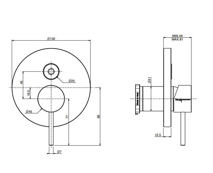 Смеситель для душа, Fima Carlo Frattini, Spillo Up, на 2 потребителя, тип открывания воды-однорычажный, тип регулирования воды-керамический картридж, монтаж-настенный встраиваемый, отверстия для монтажа-1, в комплекте-металлическая пластина, кнопочный переключатель, внутренняя часть-необходимо заказать, цвет-черный матовый Смеситель для душа, Fima Carlo Frattini, Spillo Up, на 2 потребителя, цвет-черный матовый