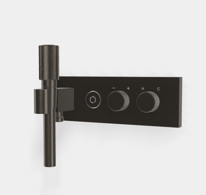 Смеситель для душа, Fima Carlo Frattini, Switch ON, на 2 потребителя, тип открывания воды-нажимной (кнопки), тип регулирования воды-керамический картридж, монтаж-настенный встраиваемый, отверстия для монтажа-4, с душевым комплектом, механическая ручка для смешивания, ручка открытия и регулировки потока, кнопочный переключатель, ручной душ с защитой от извести анти-кальк, держатель для душа с подводом воды, чёрный шланг-1500 мм, внутренняя часть-необходимо заказать, цвет-хром черный брашированный Смеситель для душа, Fima Carlo Frattini, Switch ON, на 2 потребителя, цвет-хром черный брашированный