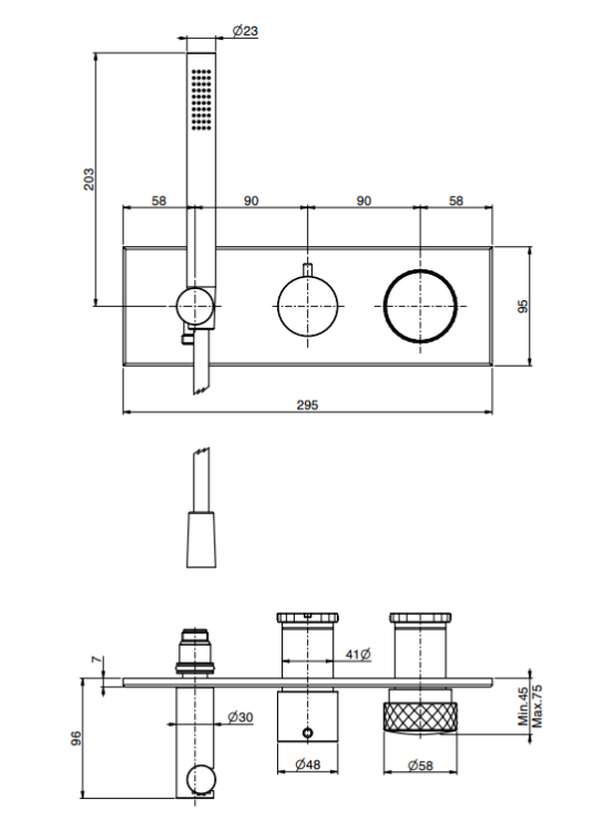Смеситель для душа, Fima Carlo Frattini, Texture Collection, H COLLECTION, на 2 потребителя, тип открывания воды-однорычажный, тип регулирования воды-керамический картридж, монтаж-настенный встраиваемый, отверстия для монтажа-3, в комплекте-держатель для душа с подводом воды, ручной душ с защитой от извести анти-кальк, гибкий шланг хромалюкс, длина шланга, мм-1500, накладка и внутренняя часть-необходимо заказать, цвет-хром черный брашированный Смеситель для душа, Fima Carlo Frattini, Texture Collection, H COLLECTION, на 2 потребителя, цвет-хром черный брашированный
