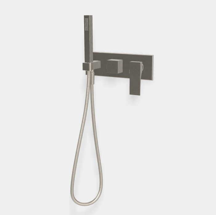 Смеситель для душа, Fima Carlo Frattini, Zeta, на 2 потребителя, тип открывания воды-однорычажный, тип регулирования воды-керамический картридж, монтаж-настенный встраиваемый, отверстия для монтажа-3, в комплекте-держатель для душа с подводом воды, ручной душ с защитой от извести анти-кальк, переключатель, гибкий шланг хромалюкс, длина шланга, мм-1500, внутренняя часть-необходимо заказать, цвет-брашированный никель Смеситель для душа, Fima Carlo Frattini, Zeta, на 2 потребителя, цвет-брашированный никель