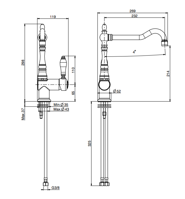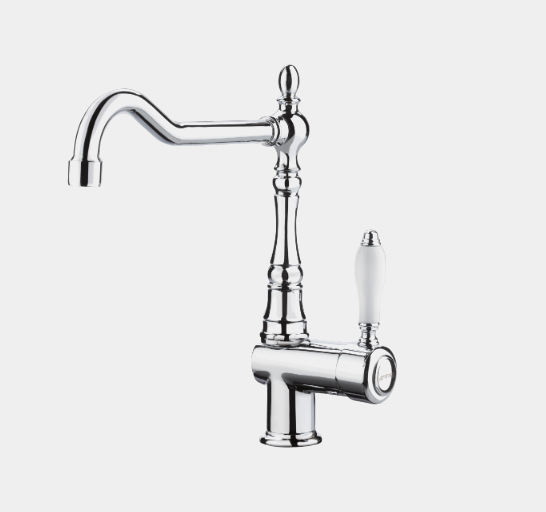 Смеситель для кухни, Fima Carlo Frattini, Kitchen, Herend, тип открывания воды-однорычажный, тип регулирования воды-керамический картридж, монтаж-на раковину/столешницу, отверстия для монтажа-1, высота, мм-298, вынос излива, мм-232, тип излива-поворотный, материал ручки-керамика, цвет ручки-белый, тип подводки-гибкая, стандарт подвода воды-3/8", цвет-хром Смеситель для кухни, Fima Carlo Frattini, Kitchen, Herend, цвет-хром